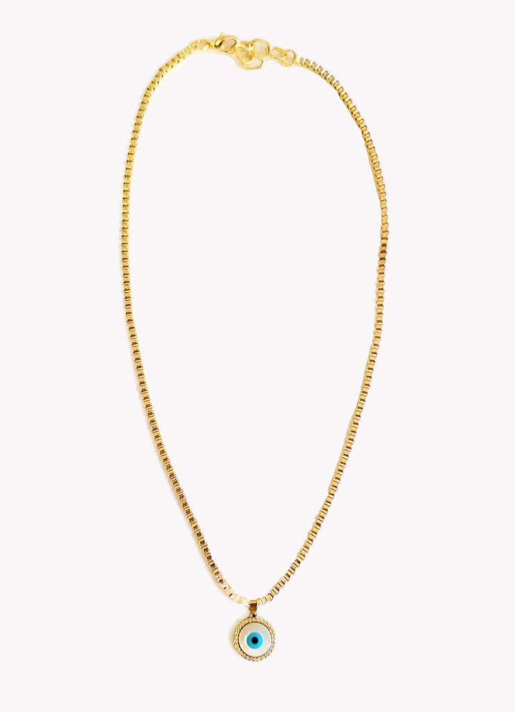 Great for layering. Beautiful gold plated deco chain with butterfly mother-of-pearl eye pendant.  16” long, adjustable.