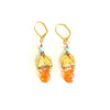 Elegantly cut golden earrings with faceted carnelian stones. Make a stylish statement with these 1.25" long earrings. Perfect for pierced ears with their lever back closures.