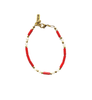 Crafted from stunning red coral and moonstone, with the option of gold or silver accents. Can be adjusted from 7-8 inches in length.