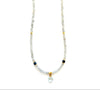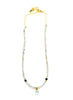 A simple elegant necklace faceted labradorite, apatite with aquamarine drop with gold-plated accents.  16-18” long, adjustable.