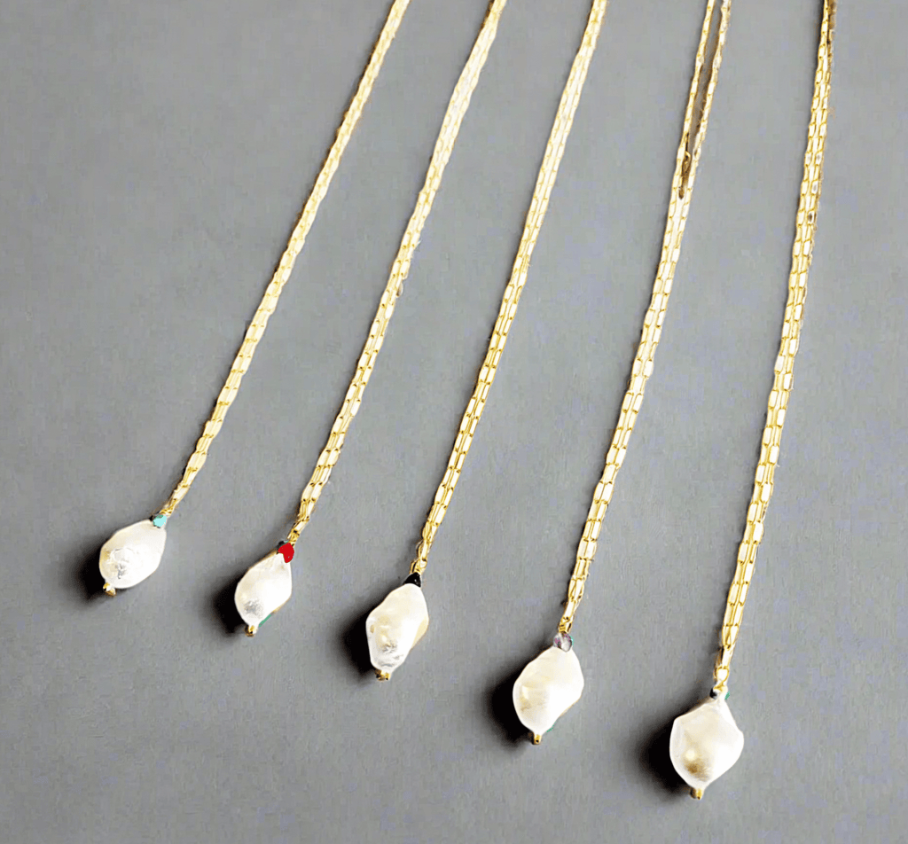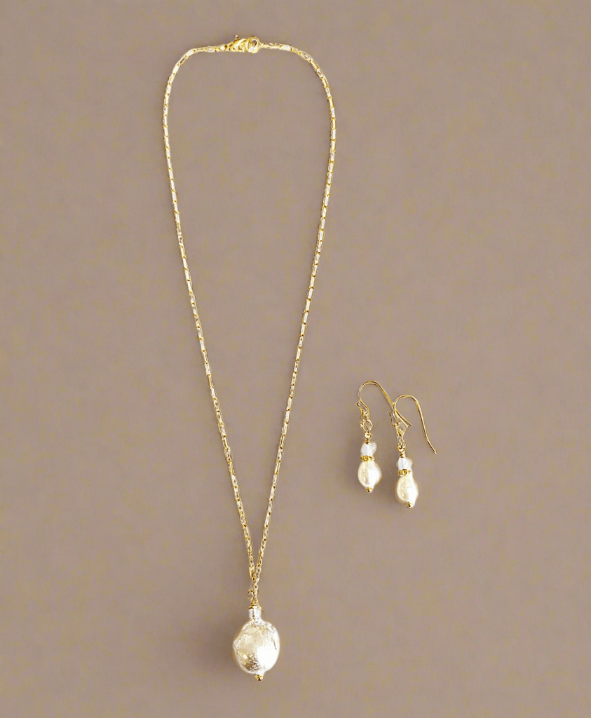 Gift perfect! Stylish Baroque pearl necklace with matching earrings gift set. Gold plate. Comes with one short necklace 16-18” long, adjustable and one pair of earrings, lever back, pierced, 1.5 inches long.