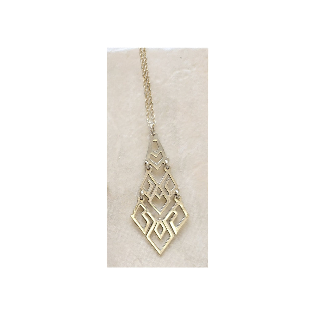 Silver necklace with kite-shaped pendant. No clasp, fits over head. 32" long, pendant measures 1.25" x 1.2".