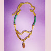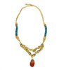A necklace that makes a long statement itself. Made of turquoise, aventurine, carnelian, vermeil, and GP chains. 20-22” long, adjustable.