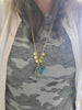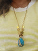 The Saba Necklace is a stylish statement piece with a large Peruvian Opal drop and gold-plated accents. Its intricate details and adjustable length of 22” make it perfect for special occasions or everyday wear. Add effortless glamour to your look with this dazzling statement necklace!