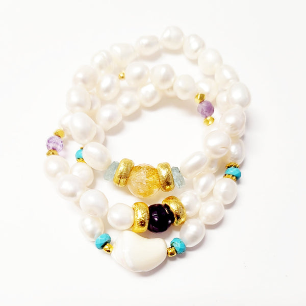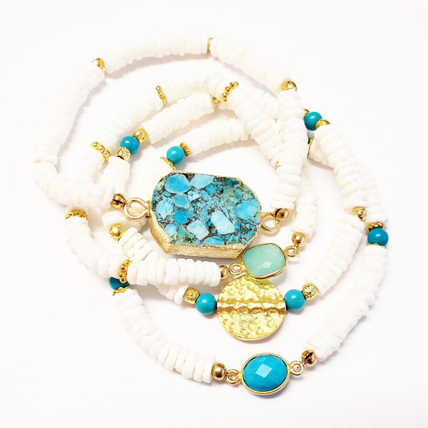 This collection is all about the gemstone stack. We've grouped by color for you but of course visit our Arm Candy Collection and design your own.