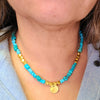 A necklace that is perfect by itself or layering. Made of turquoise and gold plated accents. 16-18” long, adjustable.