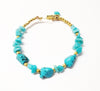 Experience the bold and unique combination of turquoise and amazonite, elegantly plated in gold, with this stunning bangle bracelet. Hook clasp.