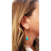 Drop chandelier style. Turquoise with gold plated accents with long ear wire. 2 inches long. Pierced.