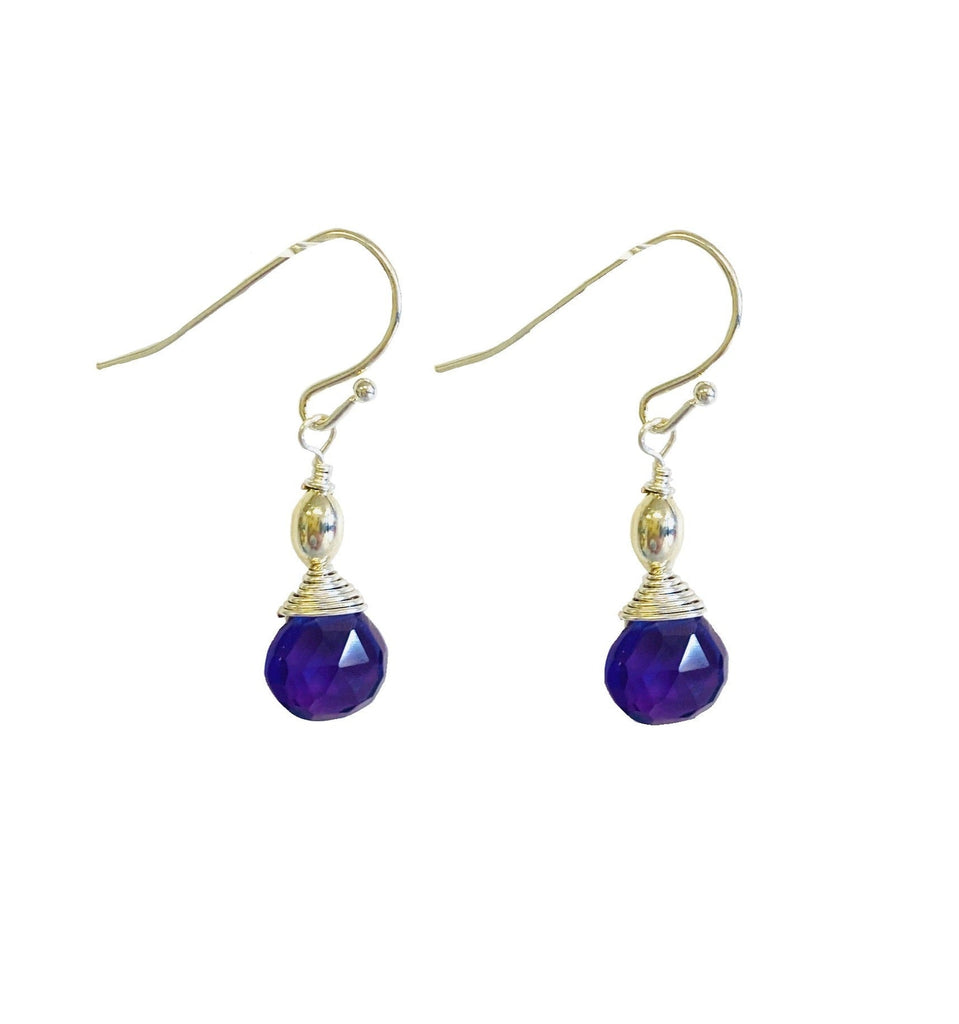 Beautiful faceted amethyst silver-plated earrings. Makes a subtle statement. 1" long, French wire pierced.