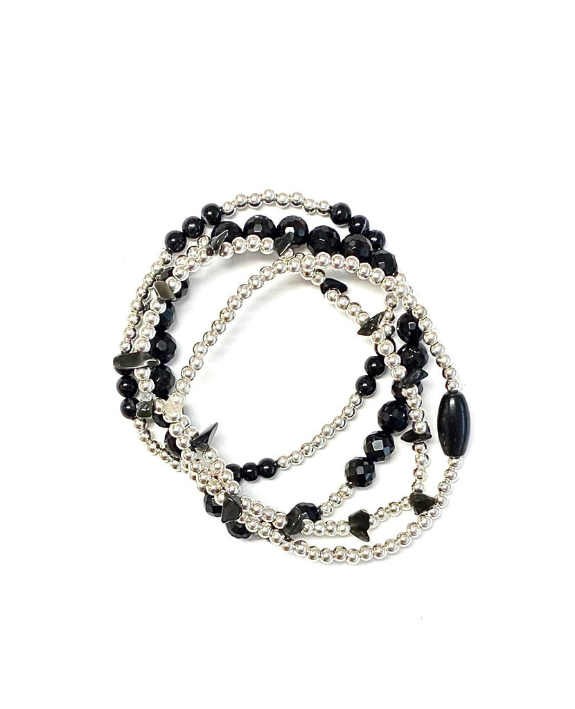 Set of 4 beautiful black onyx and silver-plated accents. 7 inches and stretch style.