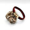 Braided black leather with red or blue accents and gold tone metal. 8.5" long.