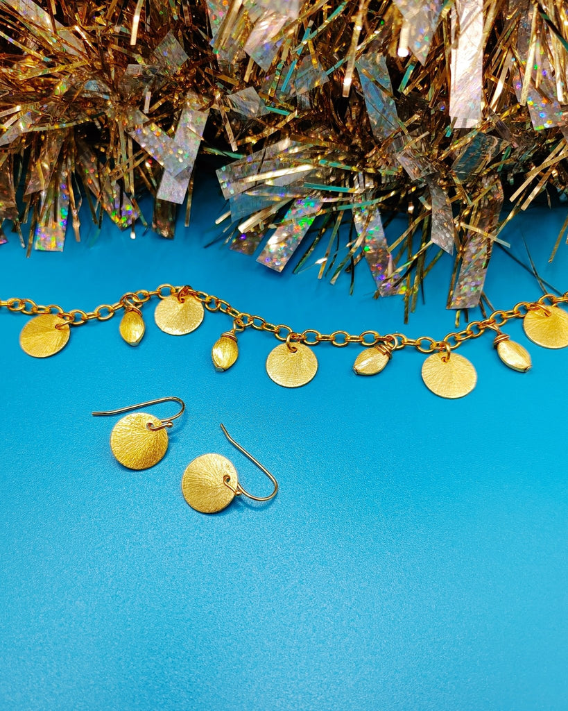 Beautiful 18kt gold-plated disc charm earrings that is perfect for that simple look. 1 inch long, pierced.