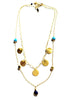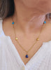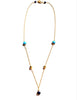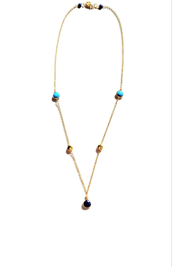 Stunningly simple. Chain style necklace with faceted turquoise and lapis centerpiece. Perfect layering piece as displayed. Measures 16-17" long with a lobster clasp, adjustable.