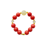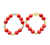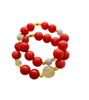 Made of beautiful coral jade with either soft blue agate or faceted pineapple quartz and gold-plated accents. Stretch bracelet. 2.25 inch diameter.