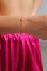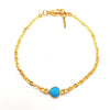 Delicate silver or gold plated cable chain bracelet accented with an oval turquoise connector. 7.5" with a lobster clasp.