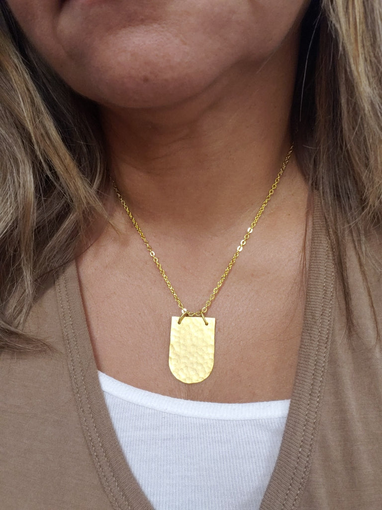 Beautiful and makes a statement on the neck. Gold-plated chain with pendant. 16 inches long and adjustable. Pendant is 2 inches wide.