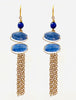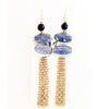Beautiful faceted lapis and kyanite with gold accents. 3.5 inches long. Pierced.