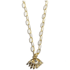A great necklace for everyday. Beautiful Eye charm necklace made of 18kt gold plate with crystals and gold plated chain. 16-18 inches long, adjustable. Pendant is 1 inch.