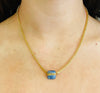 Made of beautiful a square kyanite that is half-inch wide with gold-plated chain. 16-18” long, adjustable.