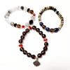 Set of 3 beautiful gemstones and with silver accents and Arabic calligraphy pendant. Smokey quartz, lapis, ocean jasper, carnelian. 7.5 inches and stretch style.
