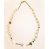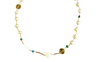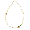 Perfect for layering.  Made of beautiful faceted green onyx, apatite, faint green pearls, mother of pearl and gold-filled accents. 16-18” long, adjustable.
