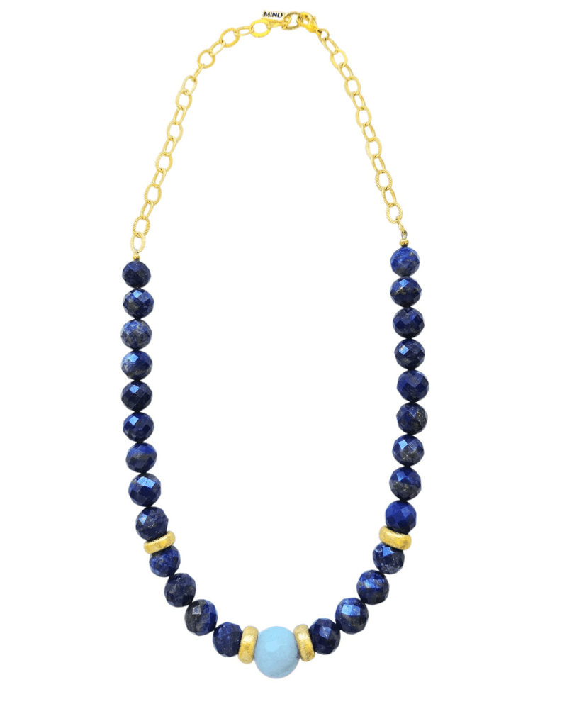 Update your style with striking lapis, blue quartz, and gold plated touches that are 16 inches in length and adjustable.