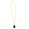 Beautiful necklace for everyday.  Made of faceted Afghan lapis stone (1 inch x 1.5 inch) on long gold-plate chain.  32 inches, no clasp.