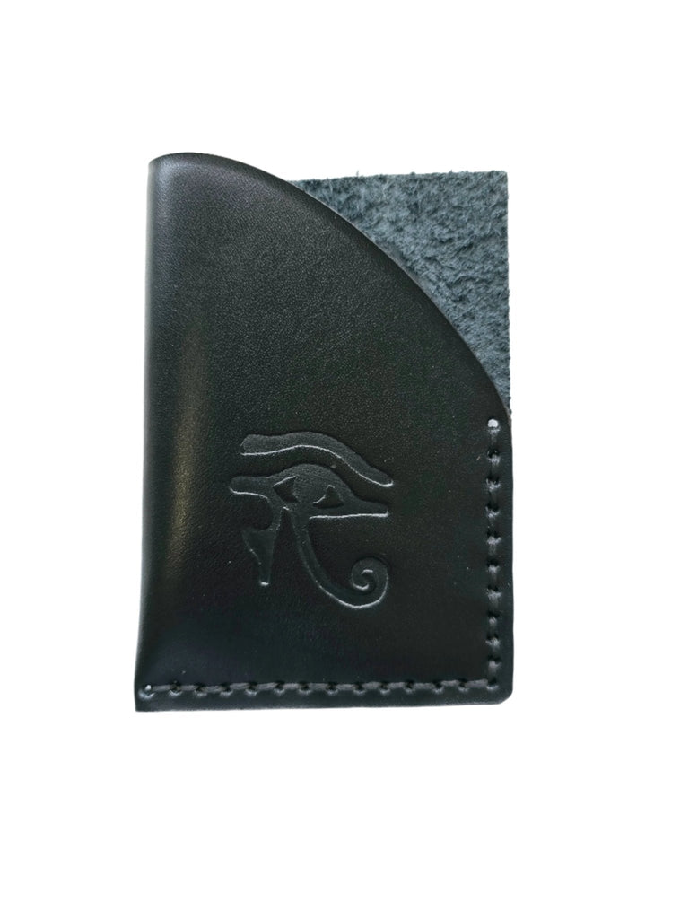 Beautiful leather card holder. Perfect for business cards or credit cards with Egyptian design of pyramids or Eye of Horus. 4 inches tall and 3 inches wide. Made in Egypt.
