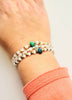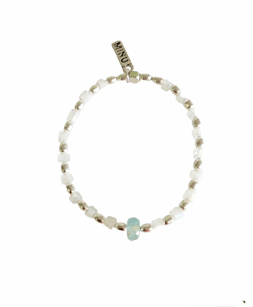 All-time favorite! This bracelet features an elegant, seamless design with faceted moonstone with apatite, amazonite, or aquamarine with brass accents. The color makes it perfect any layering. It stretches 7.5 inches wide and is as light as a feather.