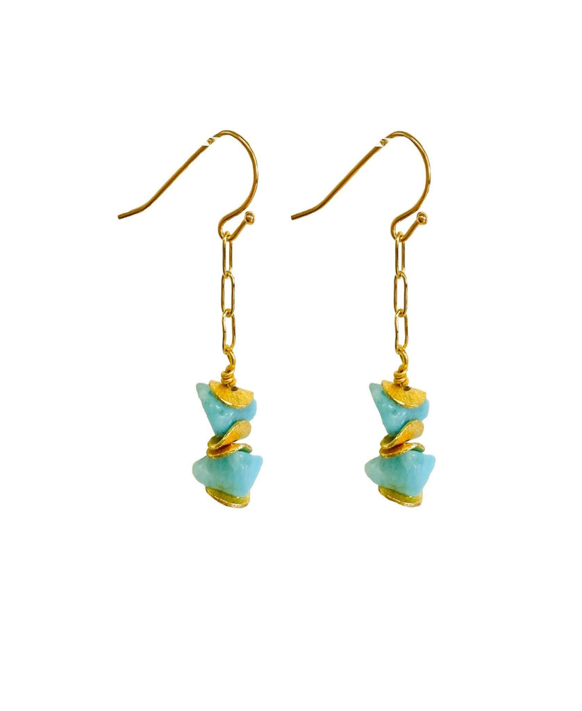 Adorn your ears with a bit of natural style, thanks to the choice of Amazonite or Turquoise Blue and a delicate gold chain. These beauties are a perfect 1.5" in length, complete with a playful ear wire.