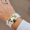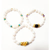 Set of 3 beautiful white pearls bracelets with faceted citrine, amethyst, mother of pearl, turquoise, and gold-plated accents. 7.5 inches and stretch style.