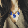 Transform your look with stunning faceted lapis, coral, and gold chain that measures 16.5". Make it uniquely yours with adjustable options.