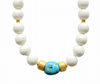 Beautiful statement necklace. Mix of white faceted agate, blue turquoise with gold vermeil. Length is adjustable from 16-18”.
