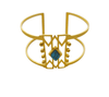 Beautiful 18kt gold plated cuff with center turquoise. 1.25 inches wide Lightweight. Handmade in Egypt.