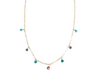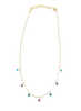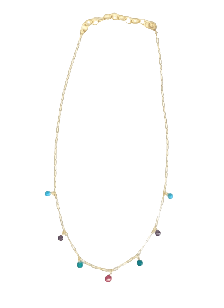 Beautiful and dainty on the neck.  Gold-plated chain with pearl pendant multicolored stones. 16 inches long. Pendant is .50 inch wide.