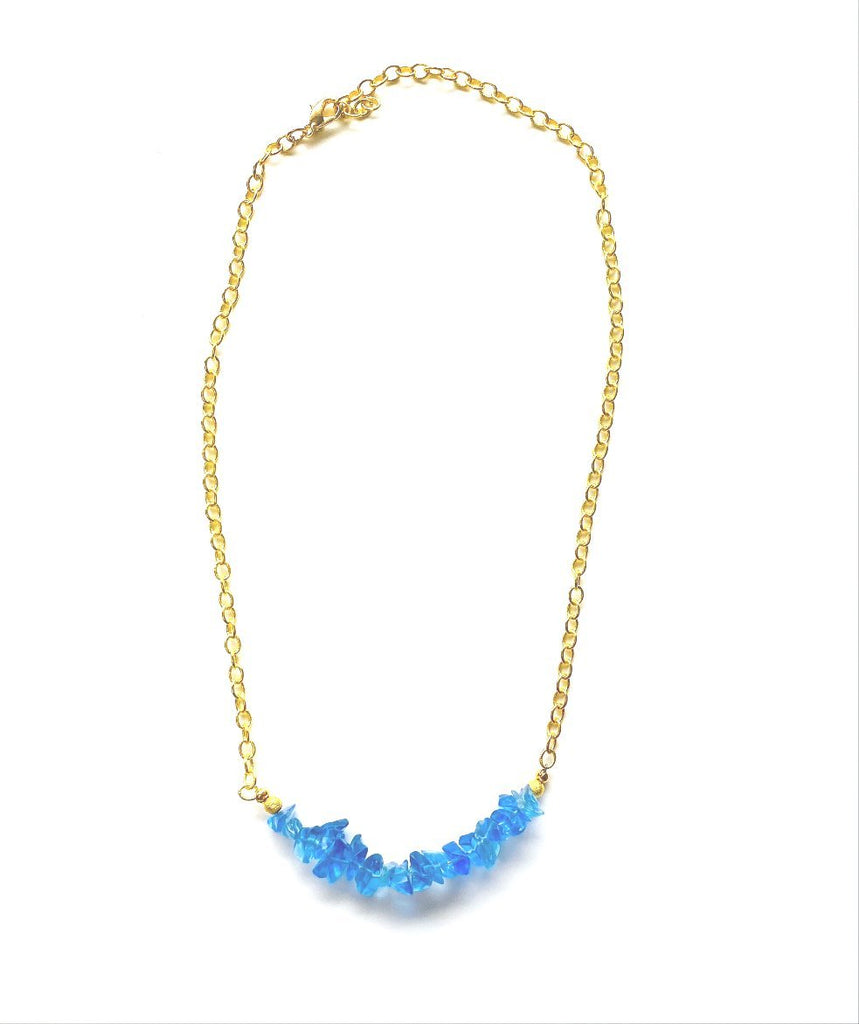 Made of beautiful iolite with gold accents. 16-18” long, adjustable.