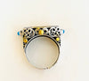 Beautiful silver ring 18kt gold with Arabic calligraphy with turquoise stones. One size fits all. Calligraphy says "Believe in Love". Ring meant to be worn on index or middle finger.