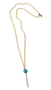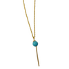 A lovely necklace for any season. Made of beautiful blue faceted turquoise and gold plate chain. 32” long. No clasp.