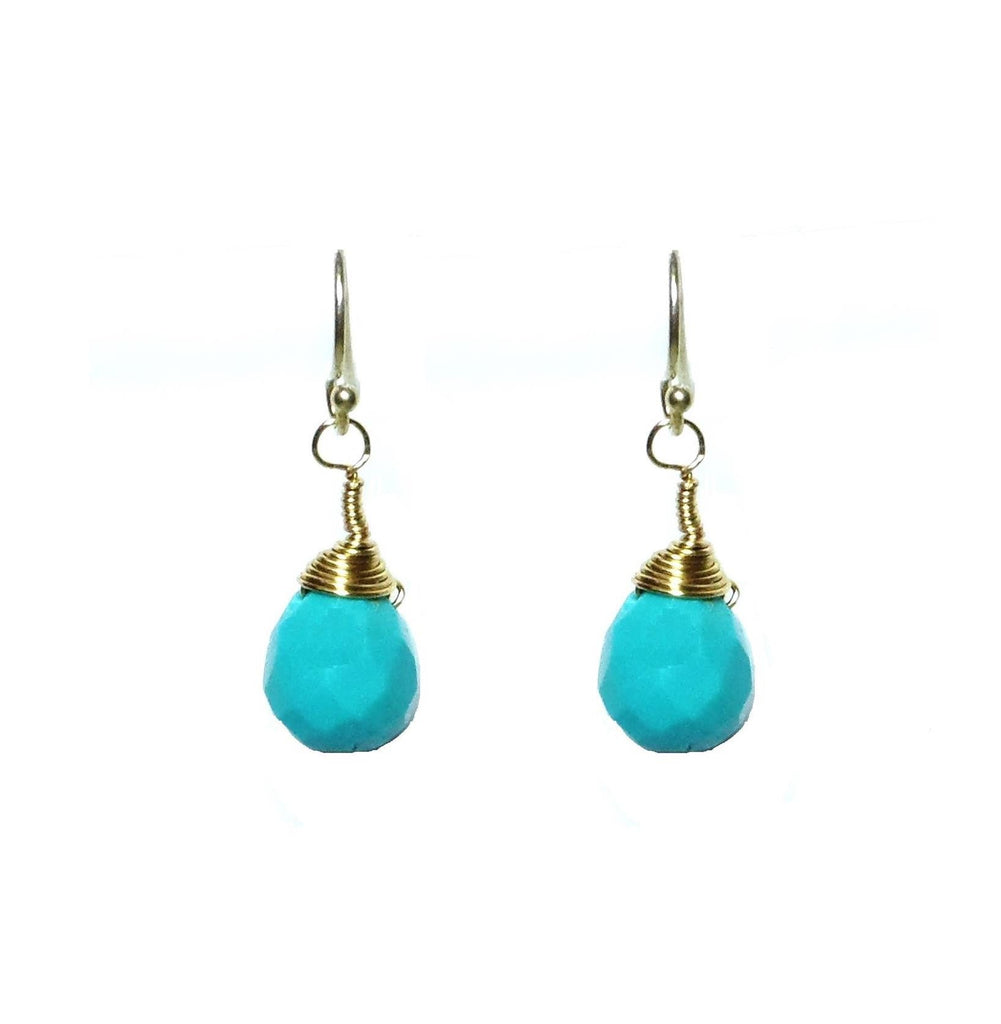 Beautiful faceted turquoise drops in gold-plate or silver-plate. Perfect for everyday. .70 inch hanging length.