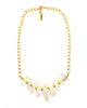 Gold and crystal necklace accented with shimmery gold beads and cable chain. 16" long, fully adjustable.